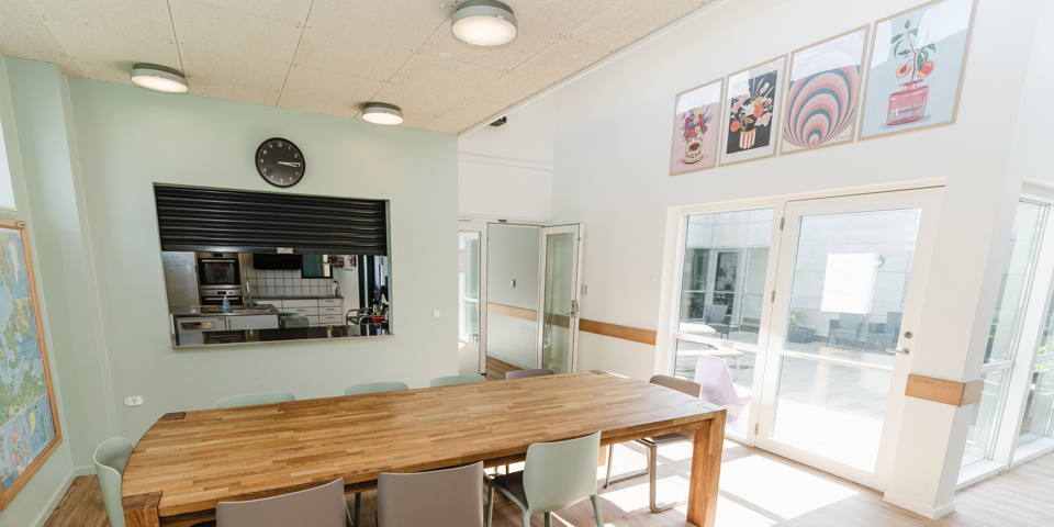 Vi har fire boafdelinger med i alt 20 pladser. Tre afdelinger er sikrede, mens én er særligt sikret. Alle unge har deres eget værelse med bad, og der er fælles køkken og stue i hver afdeling.